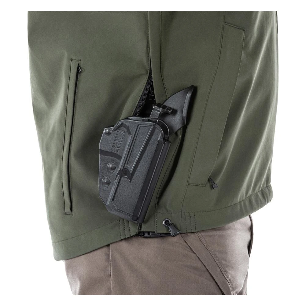 With a casual appearance and high tactical functionality, the 5.11 Sabre Jacket 2.0 is designed for optimal field performance. This jacket features a seam-sealed waterproof membrane to keep you dry, as well as 5.11’s exclusive Quixip System for rapid access to a concealed sidearm. The zippered handwarmer pockets are compatible with the TacTec System, providing customization and convenience during your mission. When the weather gets warmer, simply roll the snap-on hood into the collar or remove it completely. Three-zip out ID panels, shoulder utility pockets and integrated storm cuffs make this jacket and excellent choice whether you’re on or off duty.
