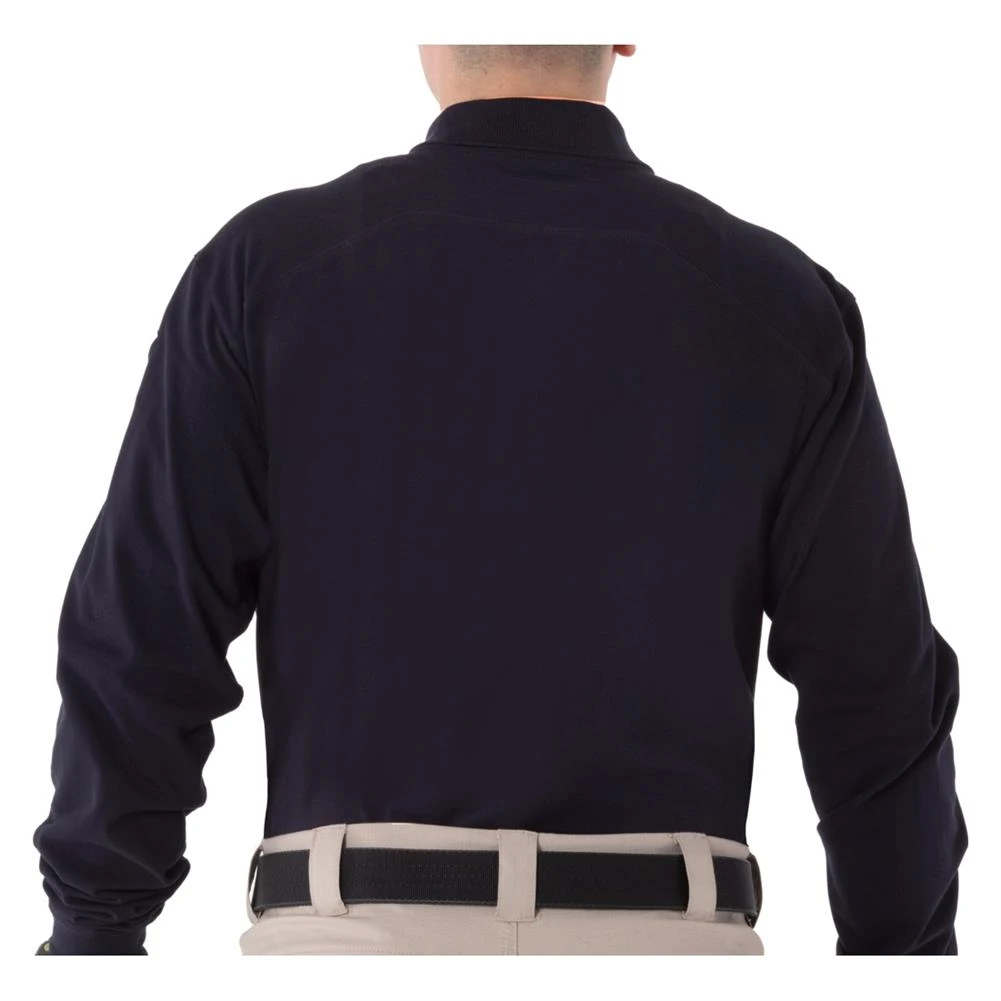 The First Tactical Long Sleeve Cotton Polo will rise to every challenge. With its lightweight, fade-resistant cotton knit and running side gusset for maximum movement, you will look as sharp as you feel on the job, even in the most active scenarios. The First Tactical Advanced Fit gives the tactical polo a better fit that’s suited for duty. The design is naturally tapered eliminating a baggy or boxy profile — all without restricting your movement. You’ll have the freedom to stay active without compromising a professional appearance. The integrated mesh knit panel is placed at the back of the collar, providing ventilation to keep you comfortable as you stay on the move. The no roll collar design integrates thin, flexible plastic stays that give you a stay flat collar. No rolling or curling — simply a professional profile that holds up.