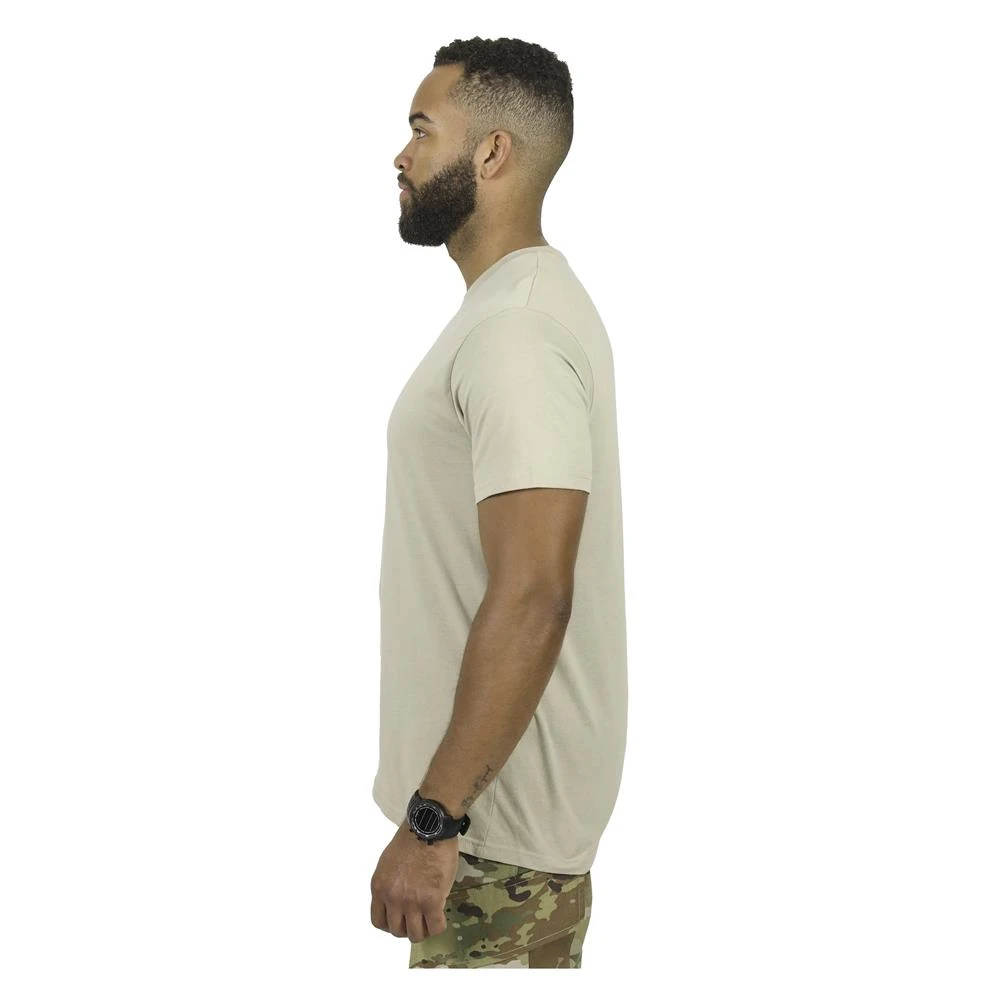 This t-shirt’s no-tag construction ensures irritant-free comfort no matter how much you train, run, bend, twist or flex.
