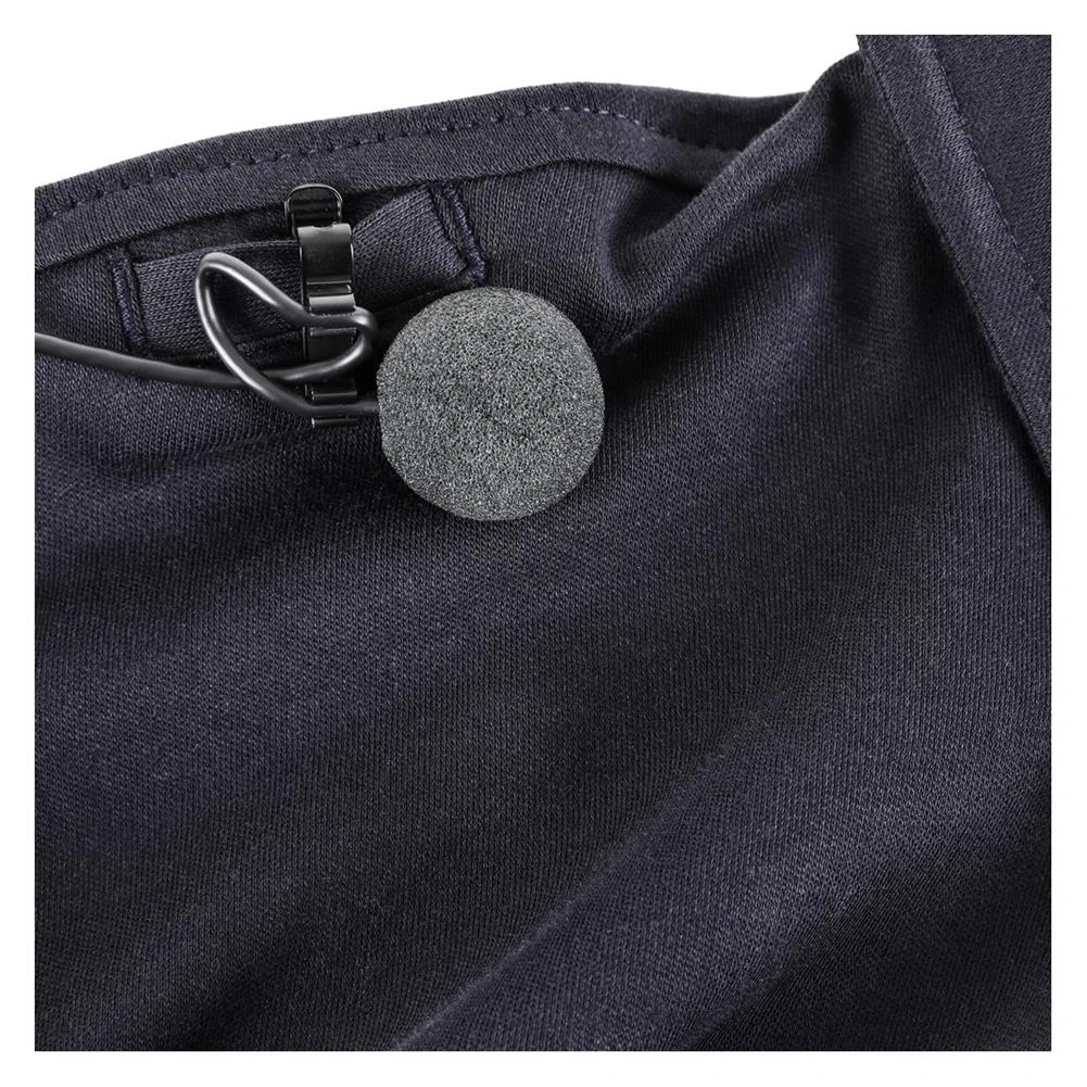 - Mic clip slots at shoulder seam