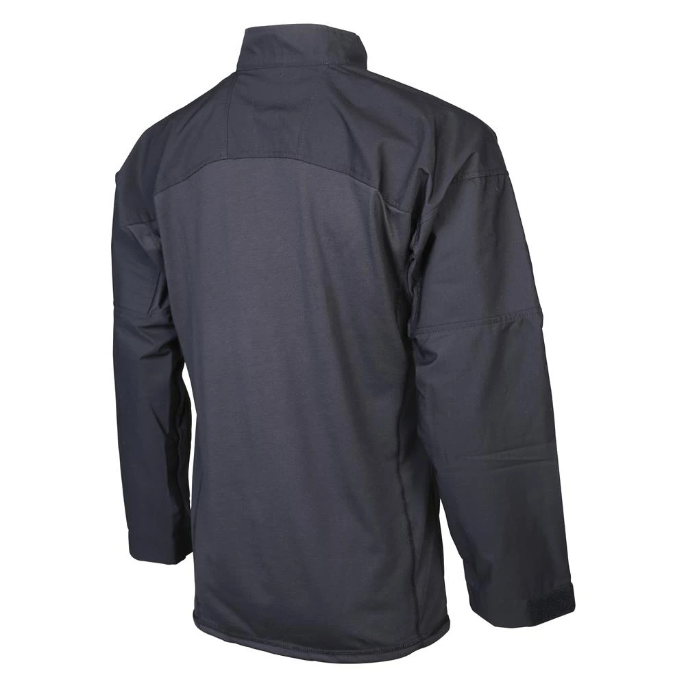 - Durable polyester-cotton rip-stop sleeves and yoke for abrasion resistance and professional appearance