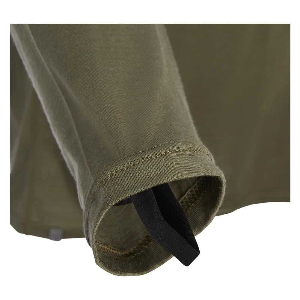 - Raglan sleeve with a gusseted underarm panel ensures sustained comfort without restricting movement