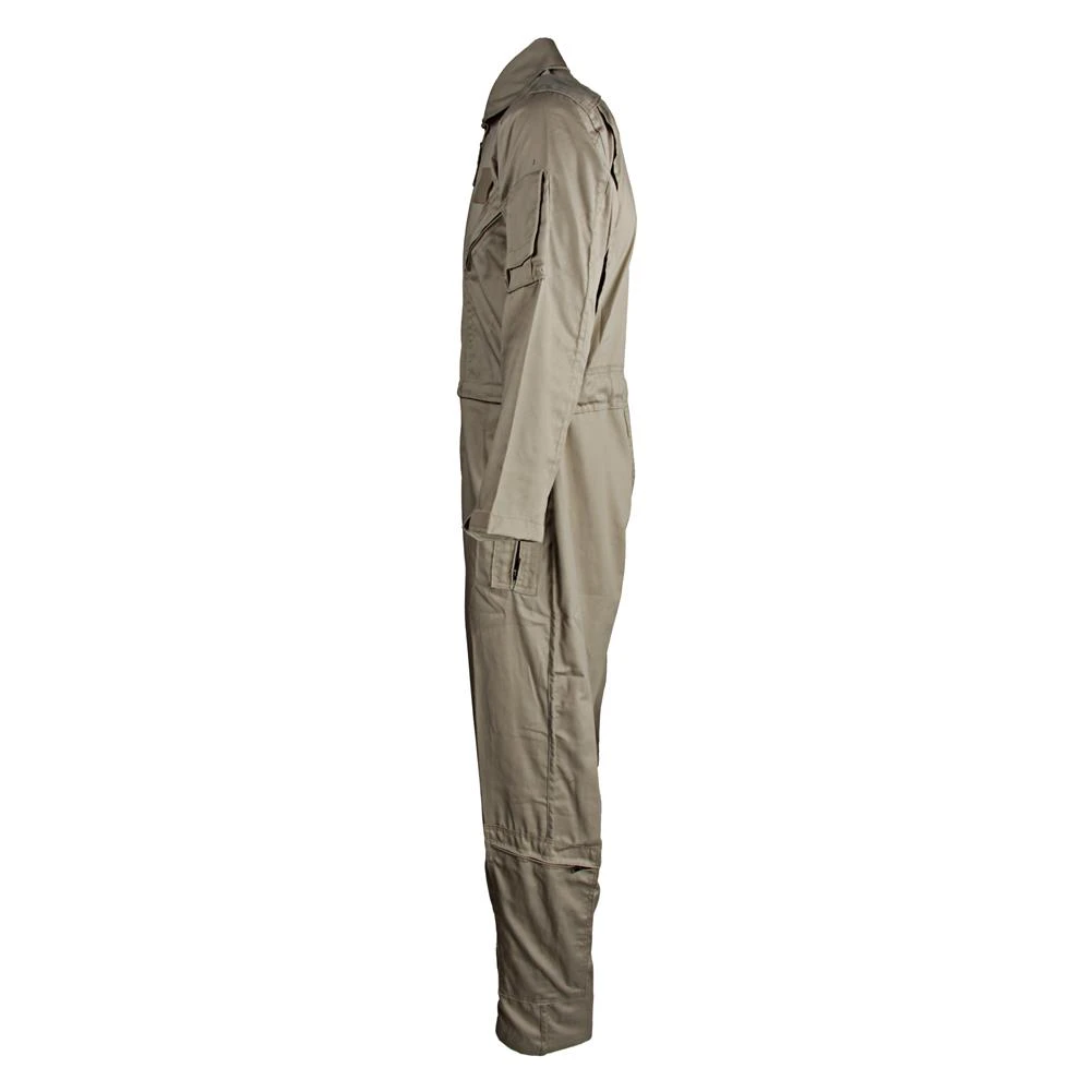 The TRU-SPEC flight suit was inspired by the design of U.S. Flyers 27-P coveralls and is ideal for both flight and ground crews. This Mil-Spec garment features a 7-pocket design with a 2-way front zipper for easy on-off functionality. With plenty of room to keep equipment on your person, the pocket configuration includes two chest pockets, two waist pockets, two extra-large calf pockets and a vertical zip pocket with bellowed pen/pencil slots. Built from a 65% polyester / 35% cotton twill fabric, it offers the job-specific characteristics of a genuine military flight suit without a fire-retardant or nomex material.