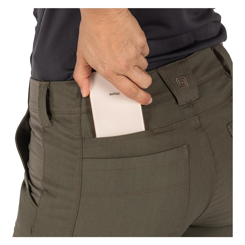 Flex-Tac mechanical stretch canvas combined with a Teflon finish to deliver unimpeded mobility and supreme stain performance in a woman’s pant. The Women’s Apex Pant has been designed with input from female first responders and they feature a comfort waistband, low profile cargo pockets and extra rear pockets. Got gear? The lo-pro cargo pockets secure with a zipper closure that provide internal magazine pockets, while waist pockets offer covert storage for flex-cuffs and a handcuff key hidden at the rear and inside bottom hem. The additional twin pockets at the rear will stow more mags or like-sized item, should you need it, and maintain a clean, unobtrusive profile if you don’t. Oh, and are you carrying a knife and/or EDC light? Of course you are, so we’ve reinforced the clip area of the pocket with Nylon 6. Walk, run, hike, climb, jump, fight…it’s all the same to the Apex.
